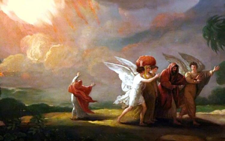 O recado divino para Sodoma então é comunicado a Ló. “Deus vai destruir esta cidade com fogo. Avise seus parentes e saiam daqui”. Ló correu e avisou as filhas casadas. Regressou, porém, triste por causa das zombarias dos genros. E, como Ló estava demorando em agir, os anjos o apressaram. Deveria pegar sua esposa e as duas filhas que ainda eram solteiras, e todos fugirem o mais rápido possível para longe do lugar, sem olhar para trás. Era a hora difícil de deixar a bela casa, deixar amigos, deixar roupas, deixar o grande rebanho. Deixar tudo!