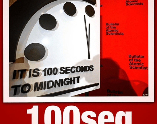 Há instantes, MEXERAM NO RELÓGIO DO FIM DO MUNDO! Novamente. Não menospreze isso! Os maiores cientistas do mundo, desde 1947, expressam sua apreensão através do Doomsclock Day. Este relógio regressivo imaginário tem ponteiros como espelho da humanidade. Estávamos há “2 minutos” desde 2018 (igualando o período mais ameaçador desde a 2ª Guerra Mundial – na Crise dos Mísseis em Cuba). Porém, agora, passamos contar em segundos: